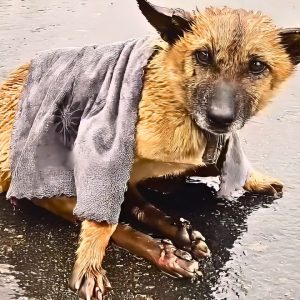 A stray dog, drenched and shivering, struggled to pull himself through a storm. His back legs, limp and lifeless, dragged along the soaked pavement as he searched desperately for shelter. Each movement was…