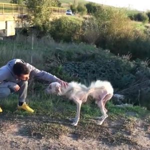 Walter didn’t look like a dog anyone expected to survive. When he first appeared on the edges of a quiet village, people described him as something almost ghost-like—moving slowly, cautiously, as if he…