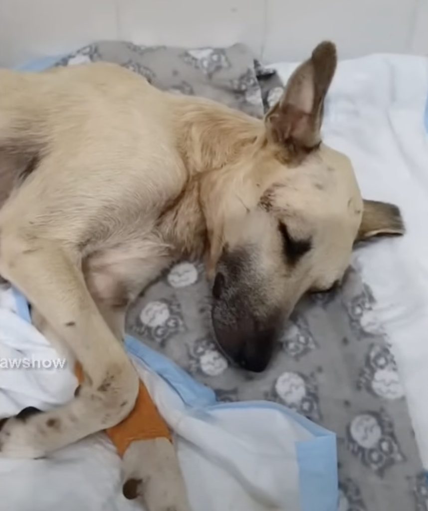 Days turned into weeks, and slowly, Hope began to recover. The once-lifeless dog started wagging her tail again. Her appetite returned, and the sadness in her eyes began to fade. The medical team visited her every day, speaking softly to her as they changed her bandages and encouraged her to stand. Her leg, though scarred and weak, began to heal. Each small step she took was a victory — a symbol of her resilience and the power of compassion.