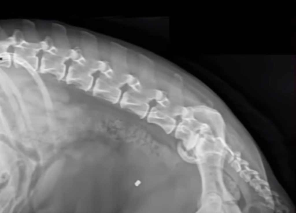 After Jem was warm enough to undergo tests, the team performed X-rays to understand the extent of his injuries. What they discovered was nothing short of horrifying. Jem had been shot multiple times — up to four bullets were still lodged inside his small frame. One bullet lay dangerously close to his spine. Combined with a degenerative condition called spondylosis, this injury had left him completely paralyzed in his hind legs. The doctors explained that he could no longer stand or walk on his own. Every movement came with visible pain, and his body had grown so weak that they feared he might not survive through the night.