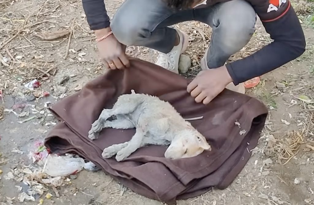 When the rescue team from Animal Aid Unlimited arrived, they immediately sensed the urgency. The puppy’s chest barely moved. His body was stiff from the cold, and his breathing was faint. The mother’s eyes followed every movement as the rescuers approached. She didn’t growl or bark—she simply looked at them, exhausted yet trusting, as if she somehow knew they had come to help. With gentle hands, one of the rescuers lifted the fragile little puppy, wrapping him carefully in a soft blanket. It was clear he needed immediate help if there was any chance of survival. The rescuers had to make a painful decision—to take the puppy and leave his mother behind, knowing she had other babies depending on her. As they drove away, her gaze lingered, her tail lowered, her heart surely torn between hope and fear.