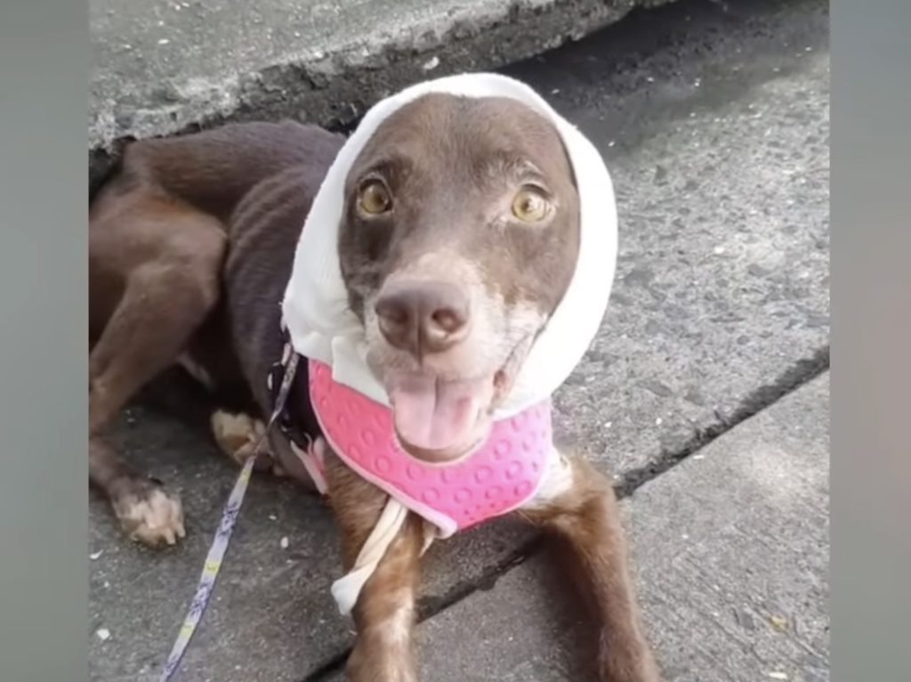 When Vida was first discovered, she was barely recognizable as the vibrant dog she was meant to be. Her frail brown body told the silent story of years of neglect, and her eyes—though dimmed by pain—still carried a quiet plea for mercy. A kindhearted neighbor had noticed her suffering, hidden away and forgotten, and decided to act before it was too late. What they found was deeply distressing. The collar wrapped around Vida’s neck had been placed on her when she was just a small puppy, but no one had ever bothered to adjust it as she grew. Over time, it became embedded in her skin, cutting deep and causing her face and neck to swell grotesquely. Each breath was a struggle, and even swallowing a small piece of food was agonizing. It was clear that if help hadn’t come soon, Vida might not have survived another day.