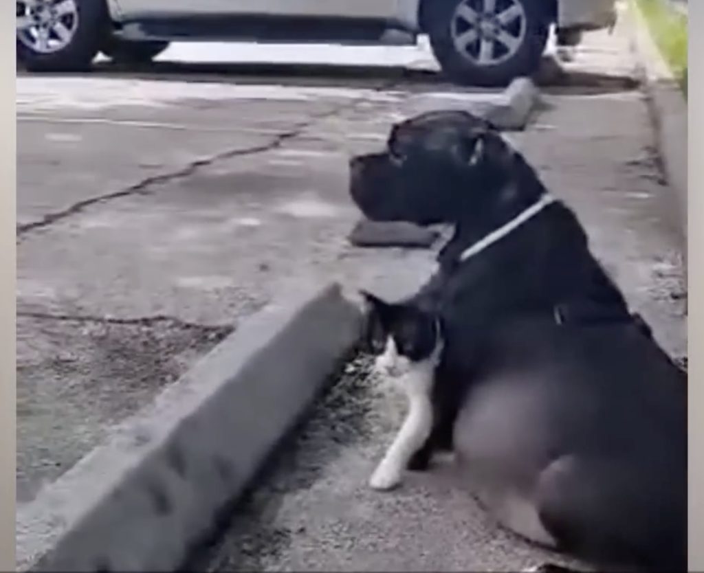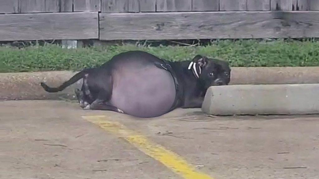 It all began with a sight that would break anyone’s heart. On a quiet roadside, a frail black dog lay motionless, her body weak and her eyes heavy with pain. Later, she would be given the name Bonita—a name that means “beautiful,” though at that moment, she was anything but in good condition. Her belly was grotesquely swollen, stretched far beyond normal, and her thin coat crawled with fleas that had bitten her raw. Blood mixed with dirt on her trembling body, and two frightened cats sat nearby, as if they had been abandoned together, left to fend for themselves in a world that had turned its back on them.