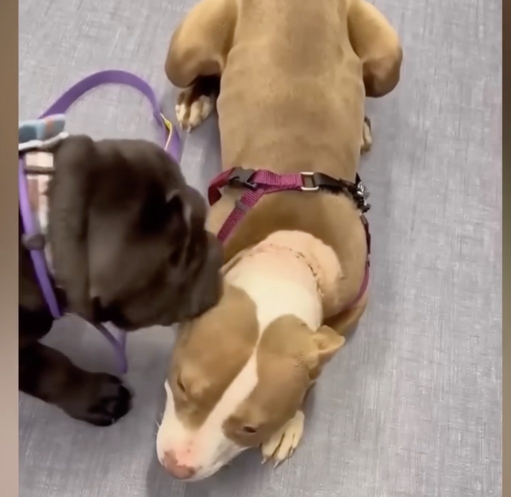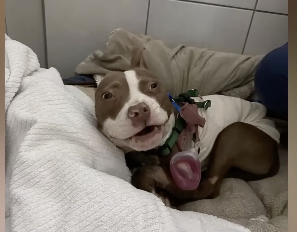 The journey to the healing place was long and filled with quiet prayers. The air smelled of medicine and hope when she arrived at the clinic. Dr. Miranda and Dr. Yao, two healers with hearts as steady as their hands, examined her gently. What they found made their eyes dim with sadness: the collar had cut so deep it had almost fused with her flesh. The infection had traveled far, and the pain must have been unimaginable. Yet Mika, despite everything, looked at them with calm, trusting eyes.