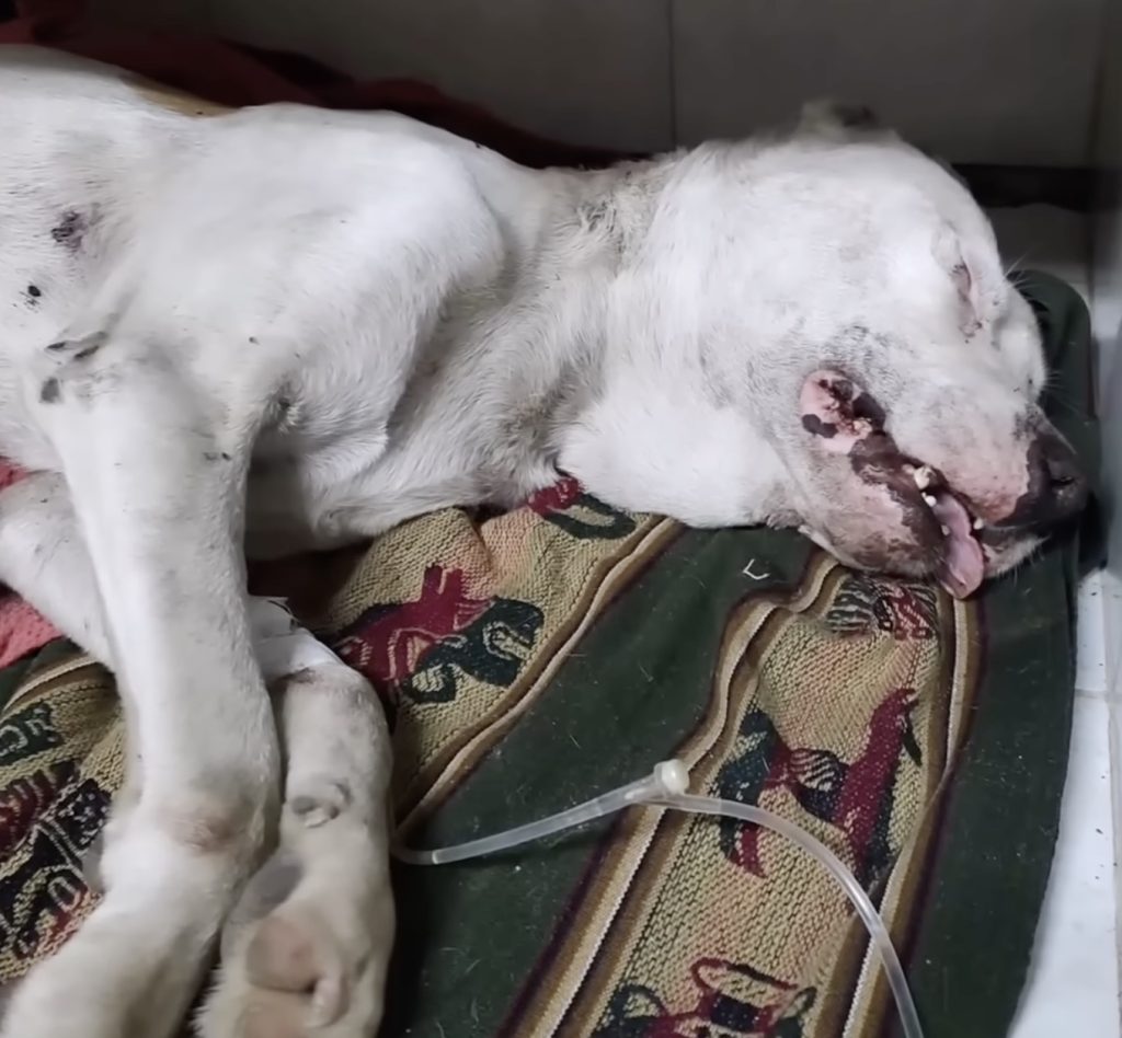 When Dimitri was first discovered, he was lying motionless in a pile of discarded debris, so weak that his breaths were barely noticeable. The rescuers who approached him couldn’t understand how he was still clinging to life. A thin piece of metal wire had been wrapped tightly around his neck, leaving him in critical condition and struggling for every breath. His face was swollen from the pressure, and his heartbeat felt faint under the gentle touch of the people trying to save him. Even in that fragile state, his body trembled with sudden, involuntary movements that looked like seizures, as if his mind was trapped in a moment of fear he could not escape.