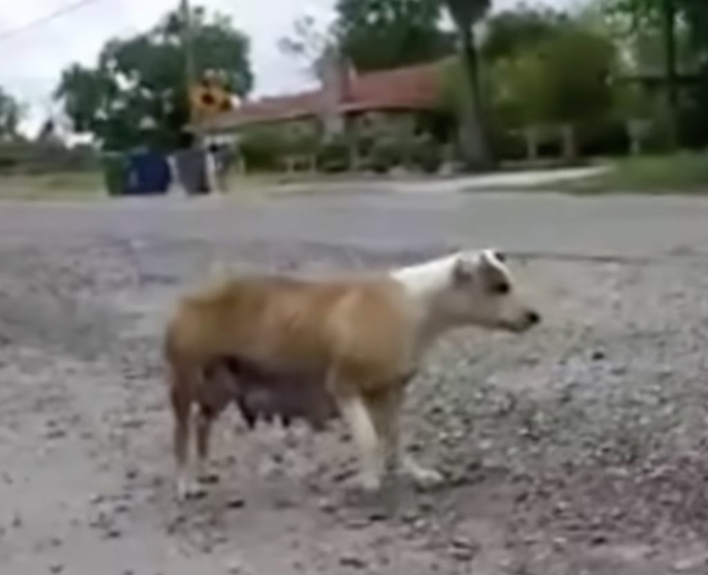 People in both towns reported seeing her at different times of day—sometimes early in the morning, other times late in the evening—always walking with purpose, always scanning her surroundings. Even when the wind was harsh or the nights turned cold, Betty never stopped. Her ribs showed through her fur, and her paws were cracked from the miles she covered, yet her spirit would not let her rest. Hunger pushed her to keep moving, but love pushed her even harder. She knew her puppies were out there, depending on her, and she refused to give up on them.