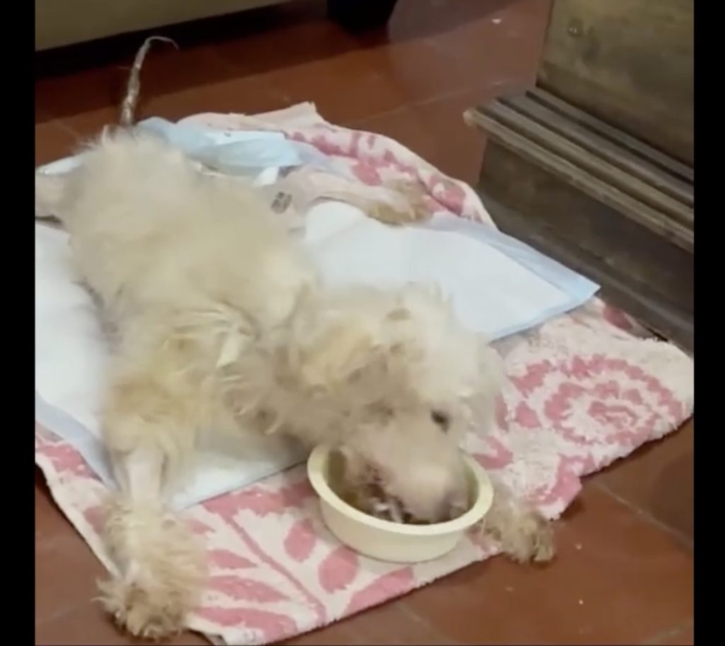Progress was slow in those early days. Fénix’s muscles had wasted away, leaving him unable to move on his own. But morning after morning, caregivers whispered encouragement, stroked his head, and stayed by his side. After several days, he managed a small but powerful milestone—he lifted his head on his own. For most dogs, such a simple action might go unnoticed, but for Fénix, it was a victory. It was the first clear signal that he had not surrendered to despair.