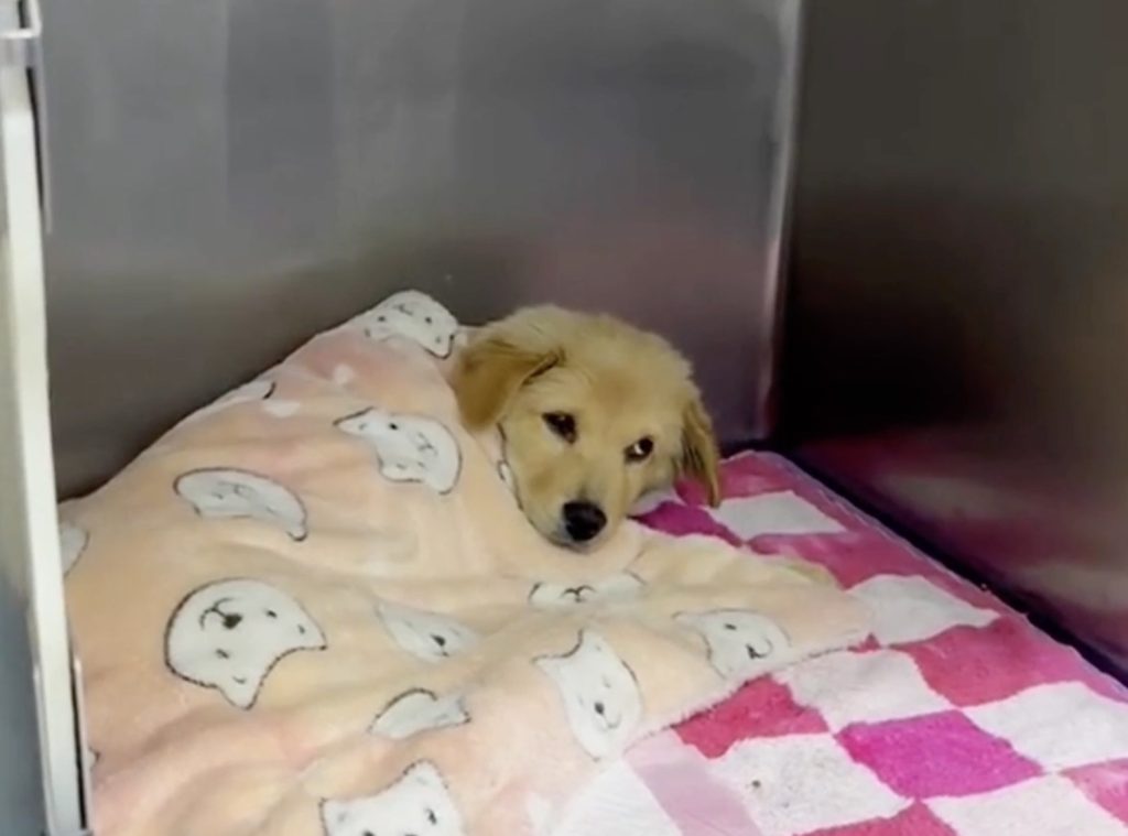 A person was out walking their own dog on an ordinary day, not expecting anything unusual, when a small figure by the side of the road caught their attention. At first, it looked like just another stray searching for a place to rest, but as they drew closer, they realized it was a very young golden retriever puppy struggling with every tiny bit of strength it had to climb a simple curb. The puppy’s front legs pulled forward with determination, but its hind legs dragged behind, limp and unresponsive. It tried again and again, refusing to give up, yet it could barely lift its small body off the ground. In that heartbreaking moment, the person understood something was terribly wrong. The puppy’s hind legs appeared disabled, likely the result of being crushed or severely injured by a passing car. And when the puppy lifted its head, its eyes—full of pain, fear, and a silent plea—made the person stop in their tracks.