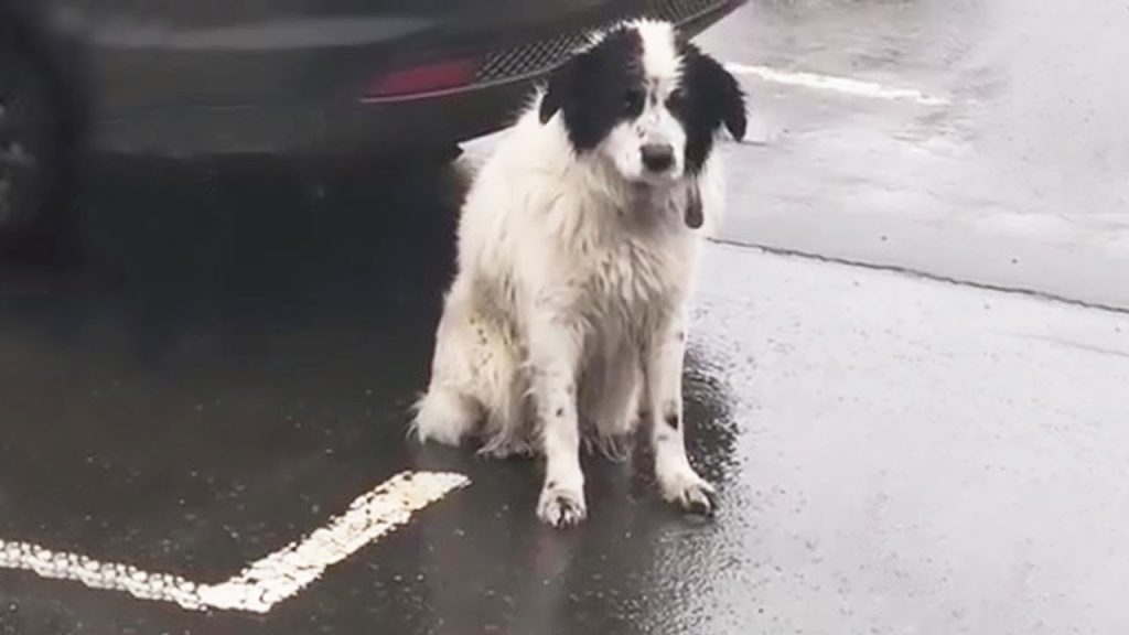 Early one rainy morning, a bystander noticed a lone dog sitting quietly in a parking lot, his fur soaked, his eyes filled with hope. He wasn’t wandering. He wasn’t looking for food. He just sat there, as if he were waiting for someone who promised to return. The bystander, concerned and moved by the dog’s stillness, reached out to a local rescue organization for help.