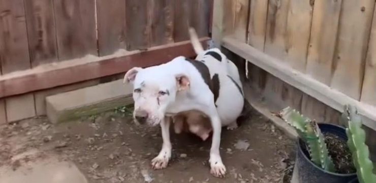 Dulce was found wandering the streets alone, her fragile body barely able to carry the weight of her suffering. She was in an advanced stage of pregnancy, yet her skeletal frame was so thin you could see every rib. Her belly, however, was swollen—not from healthy puppies, but from fluid buildup caused by severe neglect. It was clear this poor girl had been struggling for far too long. Her fur was dull and patchy, and her skin was covered in bites from fleas. The infection they likely caused had left her anemic and dangerously weak. Every small step she took seemed to exhaust her, and she would often collapse from fatigue.