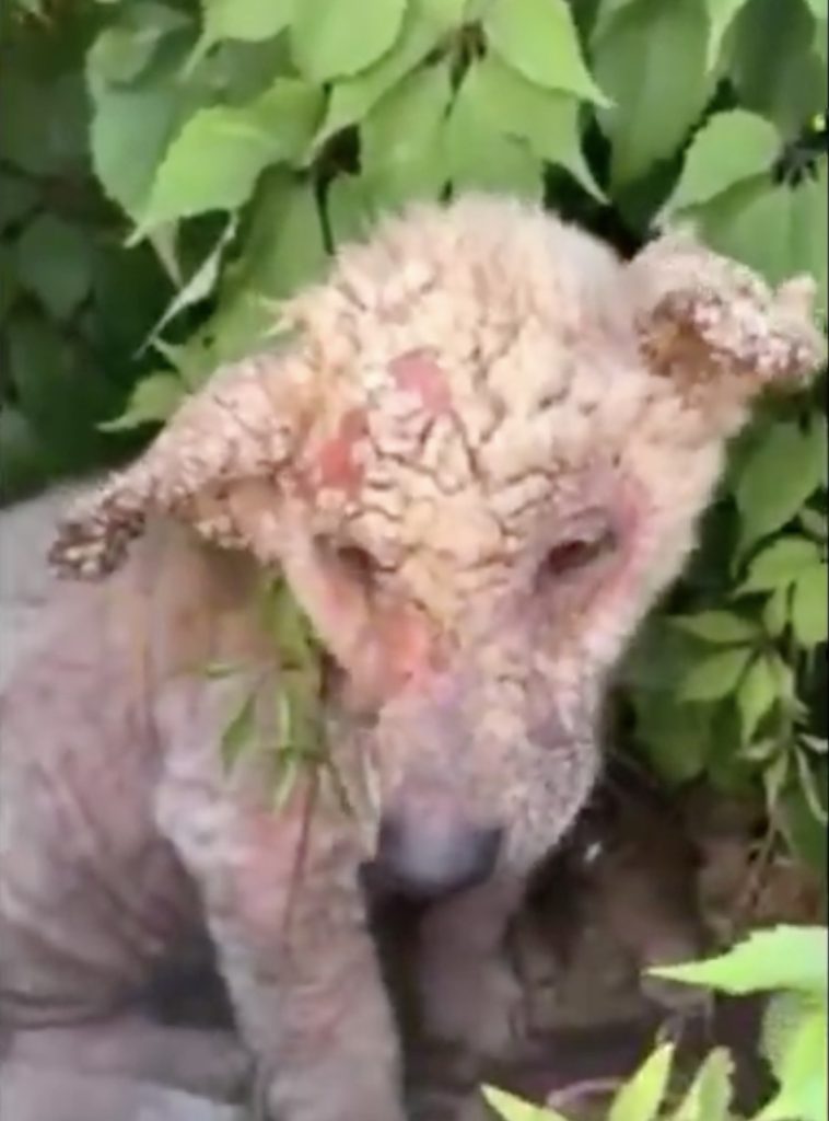 Pobrecito was thrown out of a moving car and left to fend for himself on the harsh streets. Discarded like trash, he wandered aimlessly, searching for food and shelter. He had no one. No warm bed. No gentle hand. Just the cold ground and the unkindness of strangers. His body was ravaged by demodex mange, a painful skin condition caused by parasites that left his tiny frame covered in scabs and sores. His fur had fallen out in patches, and his raw, inflamed skin was a painful sight to behold. Every step he took must have hurt. Yet he kept moving, kept hoping—though he had no reason to.