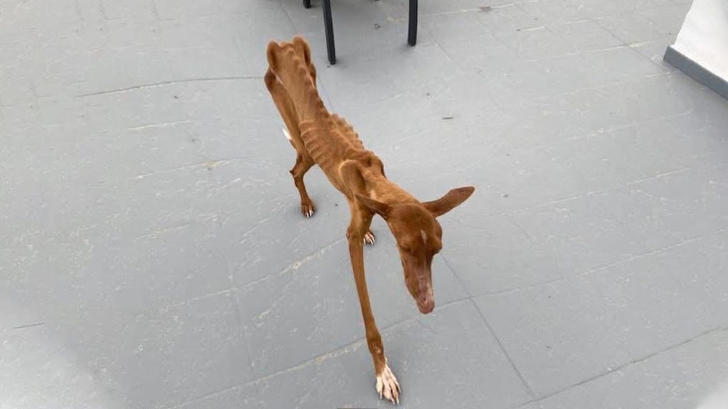 When rescuers first found him, he looked like a ghost of a dog — a frail, trembling figure barely clinging to life. His ribs and spine jutted out through thin, fragile skin, and his eyes, once full of life, now reflected only fear and confusion. Felix had been let down in the worst possible way. Starved, neglected, and possibly abandoned, he had reached the point where his body was shutting down.