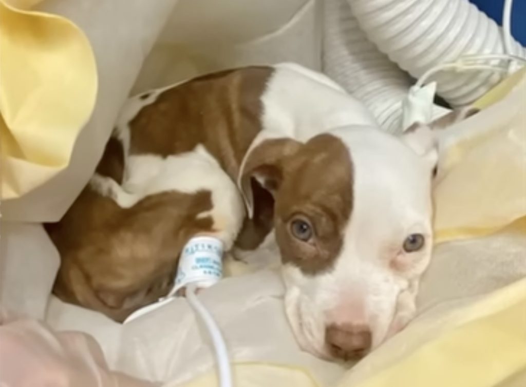 Tink’s story is one of heartbreak, resilience, and an extraordinary will to survive. At just eight weeks old, this tiny pit bull puppy had already endured more than most animals should in a lifetime. Abandoned by a backyard breeder, she was found in a severely malnourished state, barely clinging to life. She weighed only five pounds, and her tiny body was wracked with pneumonia. Her condition was so dire that even the act of breathing seemed like a struggle. But beneath that fragile frame was a fire — a will to live and a spark that would not be extinguished.