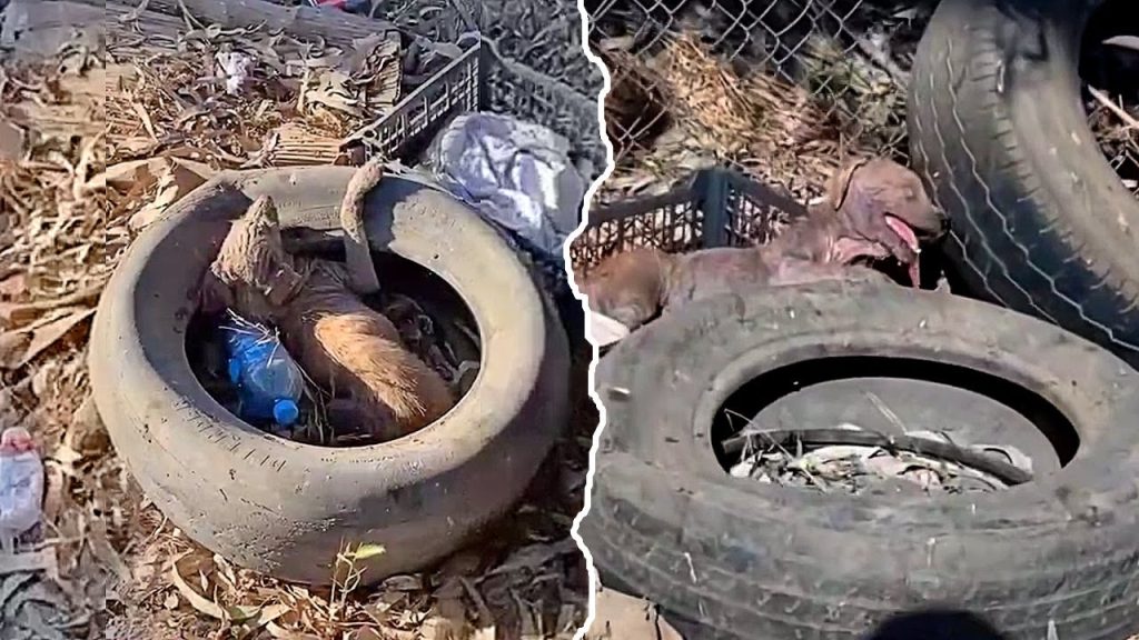 Anita was discovered in a place where most would never think to look—a forgotten corner of land filled with trash and silence. There, in the hollow of an old, discarded tire, she lay curled up tightly, her fragile body seeking warmth and safety from the harsh, unforgiving world around her. The tire was her only shelter, her only barrier against the cold wind and the loneliness that had engulfed her.