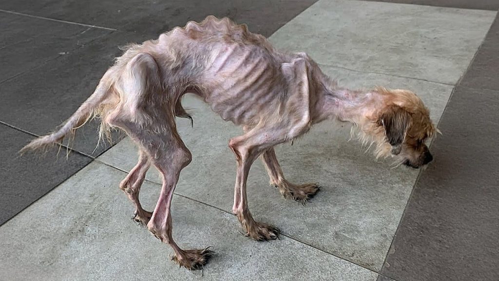 Wally was once just a shadow of a dog, left behind by the very person who was supposed to care for him. His body was a portrait of suffering—emaciated, covered in fleas, with bones so pronounced they seemed ready to tear through his fragile skin. He had been wandering alone for months, standing at strangers’ doors, hoping for a scrap of kindness. But kindness never came. Again and again, doors closed in his face, and with each one, his spirit dimmed a little more.