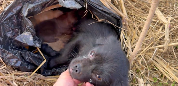 Despite its desperate condition, the puppy was hesitant to leave the spot where it had been abandoned. Fear and confusion kept it rooted in place. Even in suffering, animals often cling to the last location they remember, as if hoping someone might return. The rescuer moved slowly, offering soft words and food, creating a sense of safety rather than pressure. Hunger eventually overcame fear. The puppy cautiously accepted the meal, and with that simple act, a fragile bond began to form.