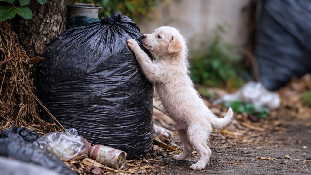 Alone and Starving, This Tiny Puppy Desperately Searched the Trash for Food