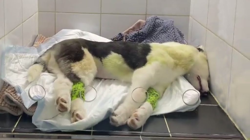 Recognizing that Eva was still fighting, the man rushed her to a veterinary clinic. What doctors discovered was devastating. She was suffering from severe brain swelling, trauma to her skull, and damage to her cervical spine. Her condition was critical, and the chances of survival were uncertain. Still, there was something about her that made everyone pause. Even in her weakest state, Eva seemed unwilling to give up. The veterinary team decided to do everything they could, carefully stabilizing her and preparing her for more advanced care. Every second mattered, and her fragile life hung in the balance.