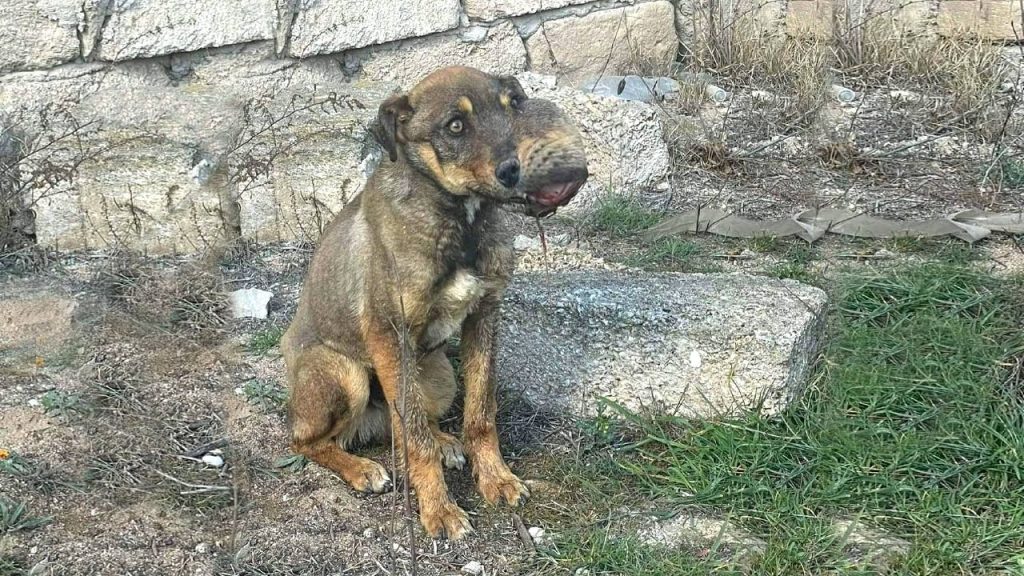 For much of his early life, Brady knew very little comfort. He was a small dog, fragile in size but strong in spirit, yet the world around him did not treat him kindly. Local children handled him roughly, treating him more like an object than a living being. Over time, the repeated mistreatment took a serious toll on his body. What began as a small injury eventually developed into something far more alarming—a large tumor that slowly grew, distorting his face and making even simple movements difficult.