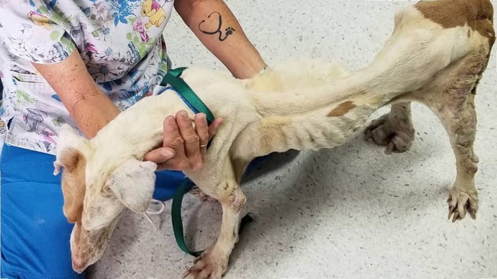 The rescuer approached slowly, understanding that trust couldn’t be forced. Every movement was gentle, every step measured. When they finally reached her, the reality of her condition became painfully clear. Binan was so frail that even the lightest touch revealed the sharp outline of her bones. Yet despite everything she had endured, she allowed herself to be lifted.