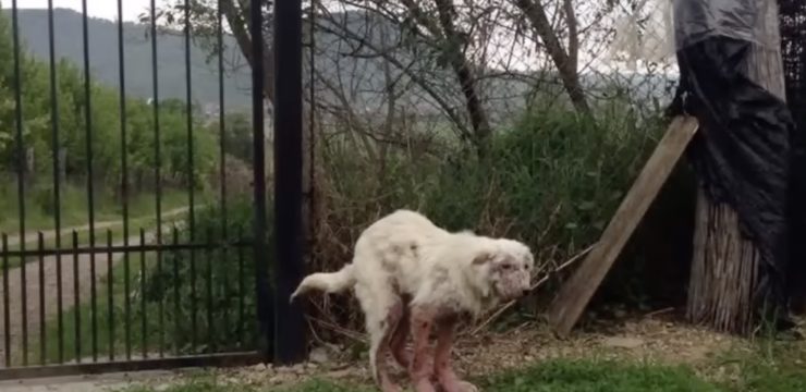 Desperate dog is starving and in pain – makes eye contact with woman who realizes the emergency