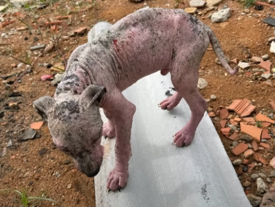 From that moment forward, Paulinho’s life began to change. He was taken to a veterinary clinic, where the staff immediately set out to understand the full extent of his condition. They performed a series of tests, including screenings for distemper and other illnesses common among abandoned animals. At first glance, the state of his skin led them to suspect mange, a disease that often devastates neglected puppies. But after careful evaluation, the diagnosis revealed something slightly different: it was not mange but a severe and widespread infection.