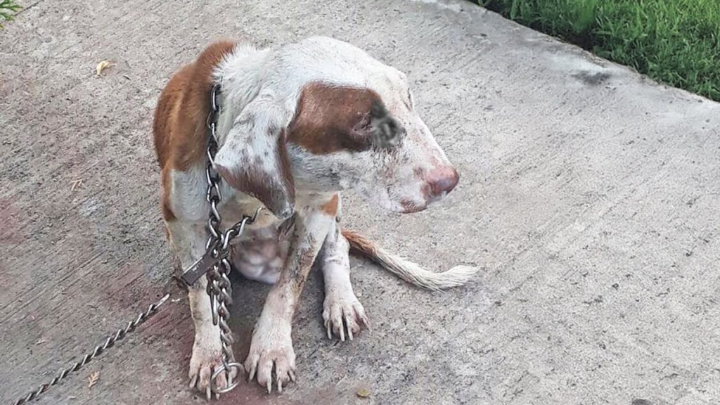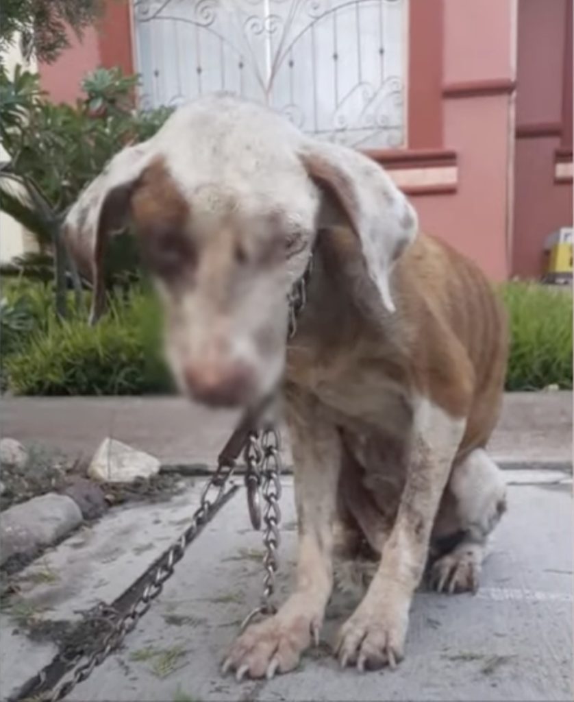 Zelda’s life began under the care of an owner who failed her in the most heartbreaking way. After acquiring a new puppy, the man decided Zelda was no longer worth his attention. Instead of treating her as a family member, he chained her outside and left her there—through scorching summer heat, bone-chilling winter nights, and countless storms. Without proper food or care, she quickly wasted away. What makes her story even more painful is that she had been used for breeding before being cast aside, treated as though her only value was in producing puppies. Once she could no longer serve that purpose, she was simply abandoned to survive on her own.
