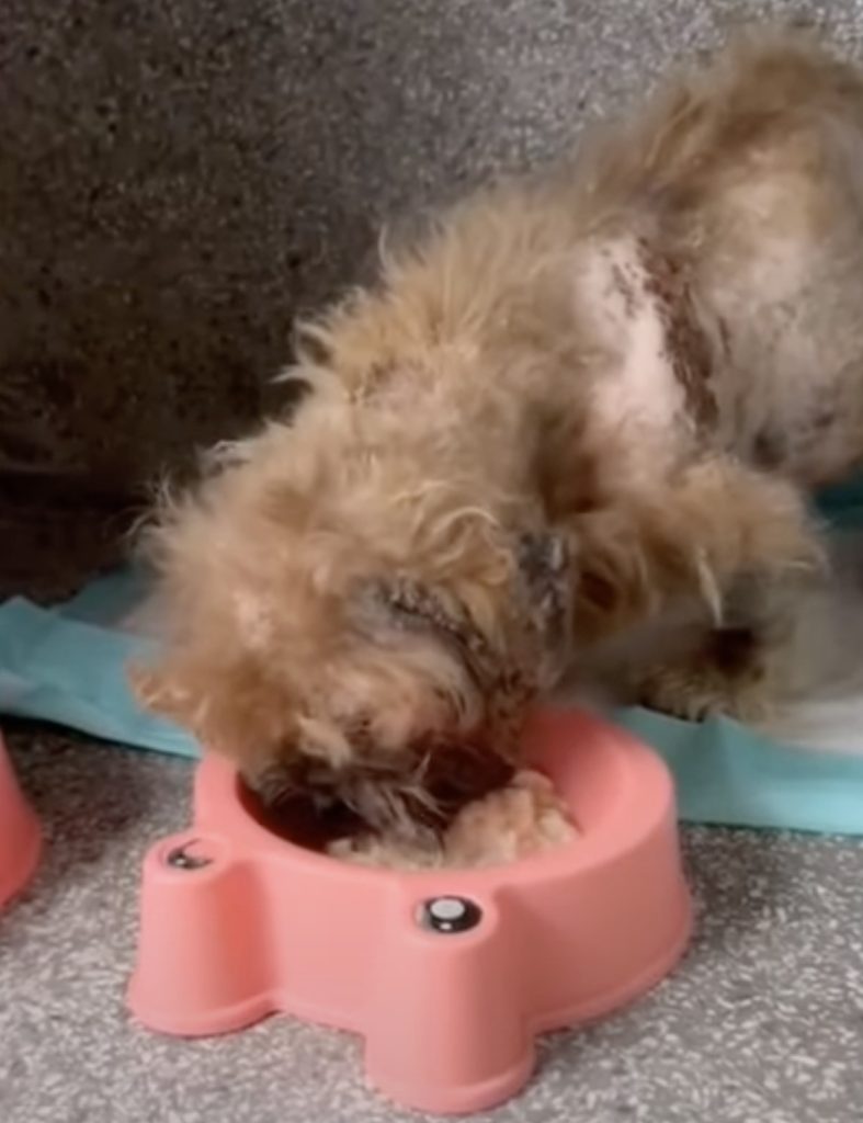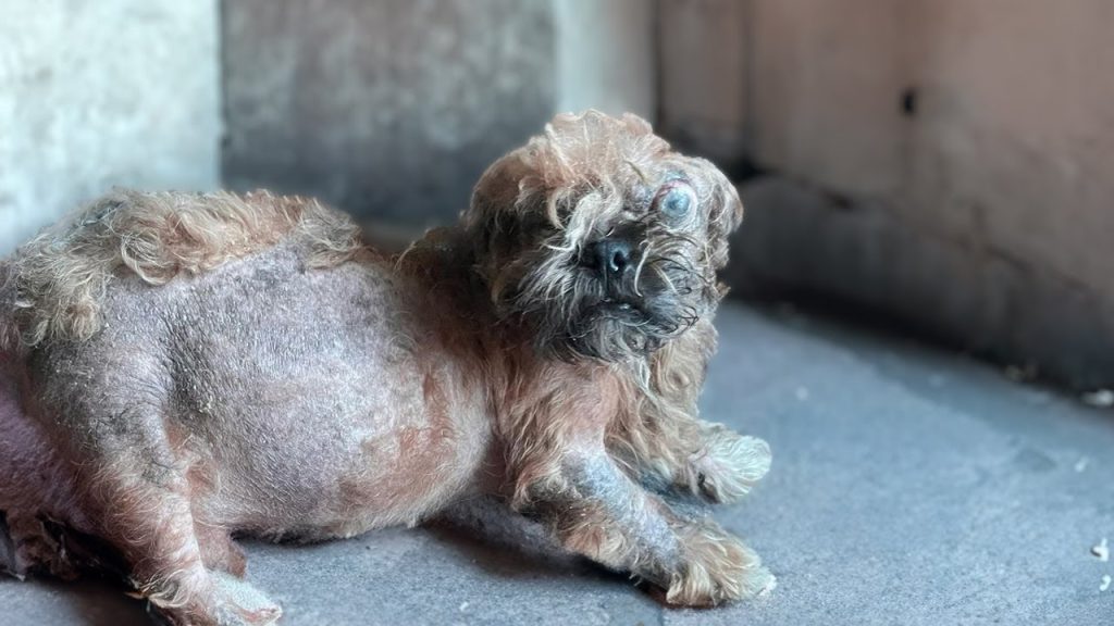 This is the moving and ultimately hopeful journey of Canela, a little dog whose life nearly ended in despair but instead turned into a story of resilience, love, and second chances. Canela was discovered in a heartbreaking state, huddled and trembling in the shadows of a dark corner after being left behind by the very person who was supposed to protect her. She was not just afraid—she was suffering. Her body showed the marks of neglect: a painful skin infection had stripped away much of her fur, leaving her raw and exposed. One of her eyes was clouded with blindness, making her world even more frightening. To many, she might have looked like a dog beyond saving. But to the rescuers who found her, Canela was still worthy of love and every chance at life.