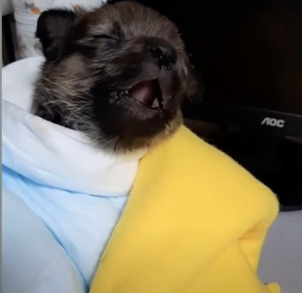In that moment, the woman knew she could not walk away. She gently scooped up the puppy, cradling her against her chest to provide warmth. With compassion guiding her every move, she carried the fragile creature home. She decided to name her Indigo—a name that felt soft yet strong, a symbol of hope for the future. It quickly became clear that Indigo was in very poor condition. She was weak, her tiny body shaking with effort just to breathe and cry. She had severe digestive issues that left her dehydrated, and her eyes appeared cloudy, hinting at possible cataracts. The saddest part was the constant sound of her cries, a desperate call for the mother she had been separated from too soon.