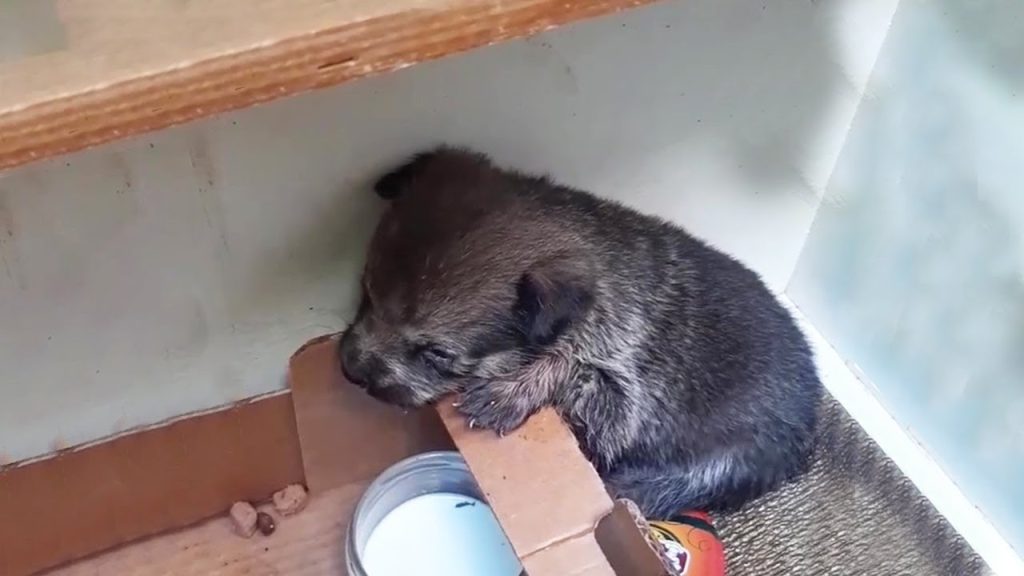 The story begins in an ordinary neighborhood, on a day that seemed like any other. A woman was walking along the sidewalk when something unusual caught her eye. Resting on the ground was a small wooden box, carefully decorated, as if it had once been meant for something precious. Curious, she leaned closer, unsure of what she would find inside. When she lifted the lid, her heart sank. There, curled up and trembling, was a tiny newborn puppy. The little one was barely a few days old and far too fragile for the harsh outside world. Next to her was a shallow bowl of milk, but the puppy was too weak to drink.