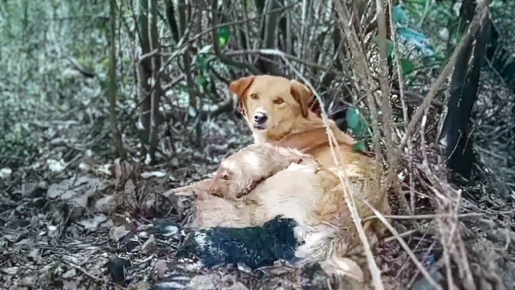 It wasn’t until one compassionate rescuer finally noticed her that her hidden struggle came to light. Curious about where she was heading, the rescuer decided to follow the brave mother. What they discovered was both heartbreaking and inspiring. Tucked away in a damp thicket were her tiny puppies. They were wet, dirty, and crying softly for their mother’s warmth and care. Despite her condition, she had done everything in her power to keep them safe. But when the rescuer approached, the mother immediately became defensive. She growled and snapped, terrified that a stranger might harm the precious babies she had fought so hard to protect. It was a natural reaction—her maternal instinct had become her shield against a world that had already been so cruel to her.