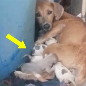 When the rescue team finally arrived, they walked into a scene that was both heartbreaking and unforgettable. In a quiet corner of a neglected home, a weary mother dog was curled around her…