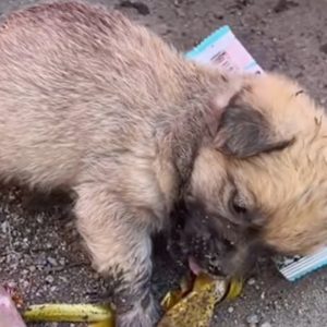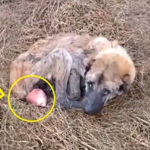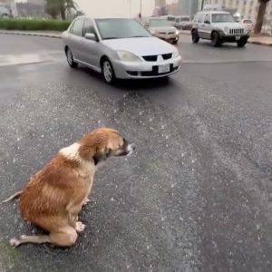 A mother dog, soaked to the bone by the relentless rain, sat quietly on the roadside as cars passed her by. Her fur was matted from the downpour, her body trembling from exhaustion,…