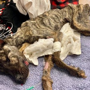Hope was nothing more than skin and bones when she was found, her ribs sharply visible beneath her matted fur. Despite her frail state, this brave mother was still nursing her litter of…