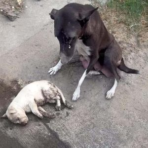 It began with a faint cry from the side of a quiet, dusty road—a sound so soft it was nearly missed. Wrapped in the silence of early morning, a newborn puppy, barely clinging…
