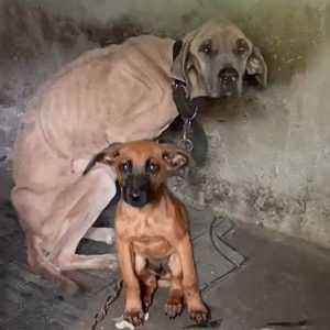 In a quiet and forgotten corner of an abandoned property, rescuers came upon a scene that would break even the hardest of hearts — a mother dog and her puppy left chained and…